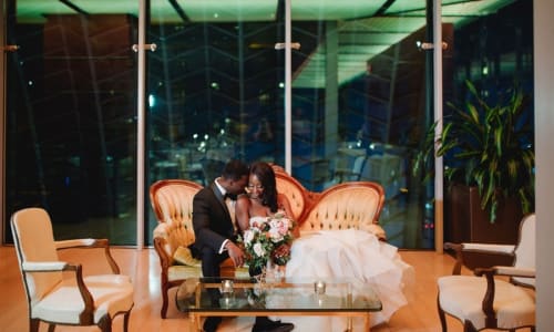 Our flagship venue, the Kimmel Center for the Performing Arts, features the stunning Hamilton Rooftop Garden and a balcony overlooking Broad Street — ideal for romantic ceremonies or cocktail receptions with a view. Couples have also transformed our theater spaces — Marian Anderson Hall, Perelman Theater, and the Academy of Music — into breathtaking wedding venues, creating a day that’s truly worthy of a standing ovation.