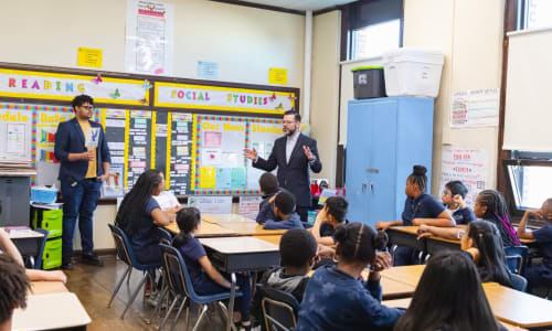We have multiple artists on staff – dancers, singers, actors, standup comedians, producers, and in the case of our Manager of Jazz Education Programs, Josh Lawrence, a GRAMMY® nominated trumpeter. In his role with our Education and Community Department, Lawrence manages all Jazz for Freedom school concerts, the School Ensemble Program, the Ensemble Arts Jazz Collective, and masterclasses. Though he is a relatively recent addition to our staff – having been hired in November of 2023 – he is no stranger to our organization. From November 2013 – June 2014, he participated in our Jazz Residency program with the music ensemble Fresh Cut Orchestra. Throughout Lawrence’s expansive career, he has achieved recognition in the jazz scene as a trumpet player, composer, bandleader, and recording artist. With a master’s degree from the Juilliard School in New York, multiple awards, and two GRAMMY® nominations under his belt, he now inspires the next generation of jazz musicians in the Philadelphia region.