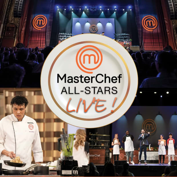 Join Season 15 finalists, The Fiery Cooks Rachel and Julio; Season 14 winner Michael Leonard; and Season 9 winner Gerron Hurt in this brand-new, high-energy stage show that delivers the ultimate MasterChef experience — LIVE up close and personal! Witness epic head-to-head battles, thrilling challenges, and jaw-dropping culinary creations right before your eyes. Plus, hear from your favorite all stars on what it's like to cook in American's famous kitchen plus tips and tricks to take to your own home kitchen.