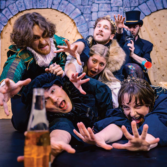 Sh!t-faced Shakespeare® has delighted audiences from Boston to Austin and all over the States with their highfalutin cocktail of traditional Elizabethan theater and balls-to-the-wall drunken shenanigans. Accept no poor relations, pale imitations, or paltry recreations, see the authentic Sh!t-faced Shakespeare® show which started it all. Featuring a revolving cast of the finest actors, the choicest cuts of Shakesperian classics, and more inebriated antics than you can violently shake a thespian at, Sh!t-faced Shakespeare® is the unique theatrical experience that has left audiences roaring in the aisles in the world over.