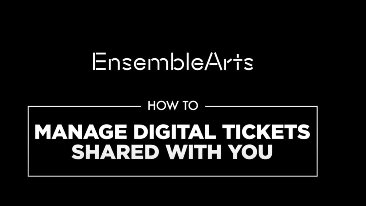 All tickets will be delivered digitally to your Ensemble Arts Philly digital wallet. Your order confirmation email will let you know when your digital tickets will be available. Once your tickets are ready, you can visit tickets.ensembleartsphilly.org to log in. If you purchased the tickets, please use the same email address and password you used when purchasing. If someone shared tickets with you, you will need to create an account at tickets.ensembleartsphilly.org to access them.